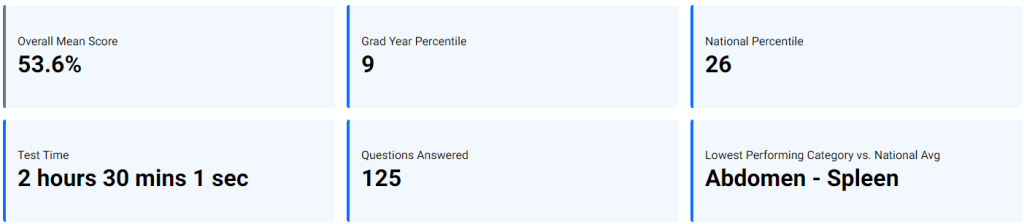 It can be very tempting to focus on your Overall Mean Score, Grad Year Percentile, and National Percentile, and either think, “I don’t need to study anymore” or “I’m never going to pass my exam.”. While knowing how you stack up against other learners who completed the assessment is useful, don’t assume you don’t need to study anymore or give up. The data in the Assessment Summary Report will help to identify the material where you underperformed and target your study to improve your understanding of these content areas.