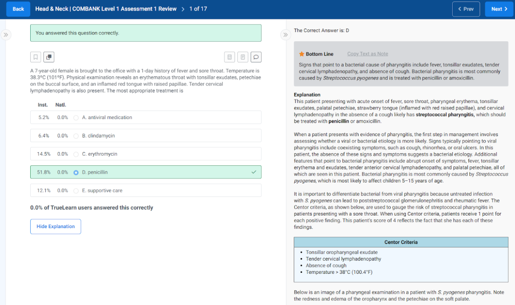 Figure 8. The “Review Questions” interface for an example question from a sample mock assessment for the Head & Neck second-level category.