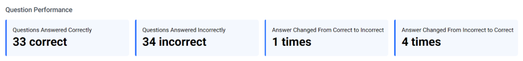 - Answer Changed From Correct to Incorrect – Shows how many times you originally selected the correct answer but changed it to an incorrect one before submitting.