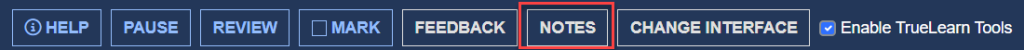 Via the Notes button in the toolbar, residents can add their own comments to a question for future reference. These are text only and can be up to 2000 characters. The Notes form opens in the right-hand side panel, and notes added on previous question attempts or saves are hidden by default but can be shown and edited. It is important to note that this is NOT functionality on the actual ABS exam, but is available in TrueLearn to help you with your studies.
