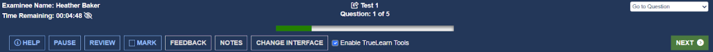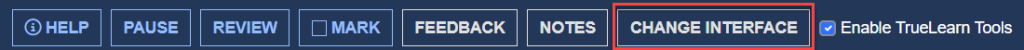 Selecting the Change Interface button allows the user to switch to the custom TrueLearn interface for testing. Learn more about this interface here.