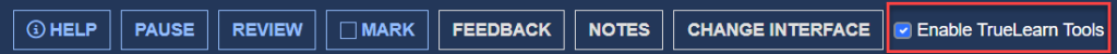 Note: TrueLearn Tools are disabled by default during timed faculty-assigned quizzes. The reason for this is to closely mirror the exam day experience and to help you focus on simulating the actual exam. We encourage residents to also uncheck this when self-testing in timed mode, too.