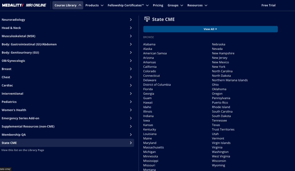 To access State CME, go to Course Library > State CME and select the course you are interested in (or select View All).